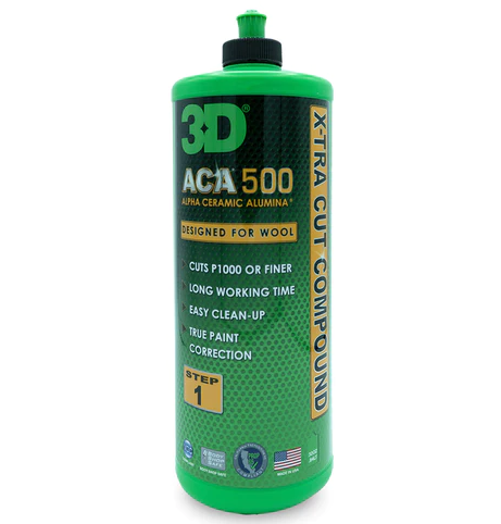 3D ACA™ 500 X-TRA CUT COMPOUND™ çok yönlüdür. ACA™ 500, yeni seramik kaplamaları düzeltmek için yeterince agresiftir ve son derece yumuşak temizlemele ve hassas olduğu noktaya kadar rafine edilmiştir. Kullanımı kolaydır, temizlenmesi kolaydır, güneşte dostudur.