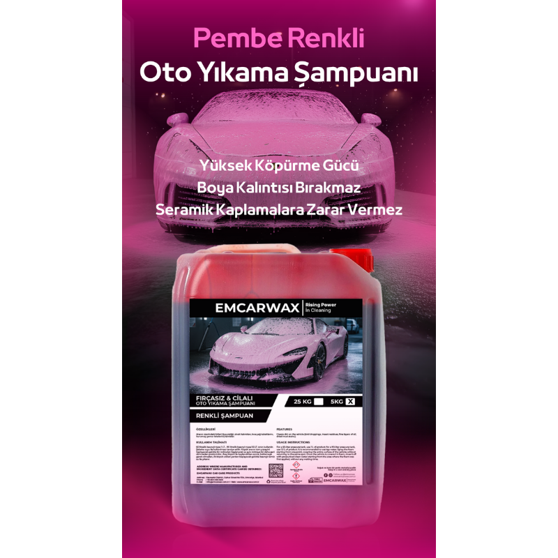 Emcarwax'ın devrim niteliğindeki Pembe Köpük Oto Şampuanı ile araç yıkama deneyiminizi bir üst seviyeye taşıyın. Güçlü temizlik performansını eğlenceli ve göz alıcı bir pembe köpük şöleniyle birleştiren bu konsantre formül, aracınıza zarar vermeden kusursuz bir parlaklık kazandırır.