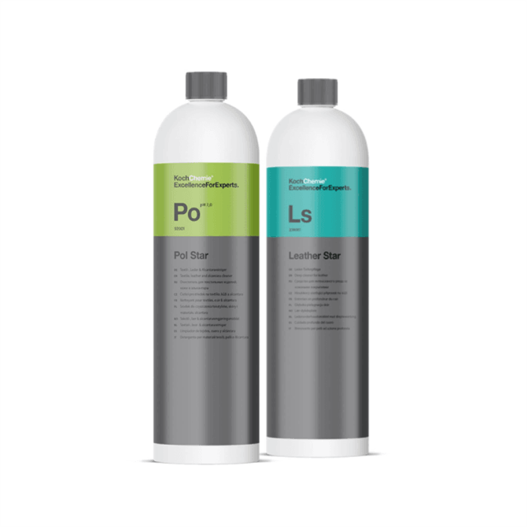 Koch Chemie Po + Ls Deri Temizliği ve Bakım Seti 1 LitreKoch Chemie Deri Temizliği ve Bakım Seti İçeriği ;Koch Chemie Po ( Pol Star ) Deri Temizleme 1 LitreKoch Chemie Ls ( Leather Star ) Deri Koruma 1 Litre1.)Koch Chemie Po Deri , Alcantara Döşeme Temizleyici 1 LitreKoch Chemie Pol Star Nedir ?Koch Chemie Pol Star, deri , alcantara , döşeme ve halı gibi tekstiller için geliştirilmiş koruyucu etkili ph nötr temizleyicidir. Arkasında filigran bırakmadan temizler ve korur. Koch Chemie Deri ve Alcantara Temizleyici , uygulamış olduğunuz yüzeylerin tekrar kirlenmesini önler . Su izi bırakmaz. Kir ince gözenekli köpük lameller tarafından liflerin derinliklerinden çıkarılır ve nemli bir bezle alınır.Koch Chemie Deri , Alcantara ve Döşeme Temizleyici Nasıl Kullanılır ?Kirlenme derecesine bağlı olarak 1:5 ila 1:20 oranında sulandırdıktan sonra bir sprey şişe yardımıyla ürünü uygulayın. Kısa bir süre tepkimeye girmesini bekleyin. Önce dikey daha sonra da yatay hareketlerle sünger veya mikrofiber bir bez yardımıyla dikkatlice çalışın. Ürünü iyice yedirdikten sonra nemli bir bez veya ıslak/kuru elektrik süpürgesi yardımıyla silin.2.)Koch Chemie Ls (Leather Star) Deri Bakım Koruyucu 1 Litre Koch Chemie Leather Star Nedir ?Koch Chemie markasının doğal saten kaplamalı birinci sınıf deri bakım ürünü. Koch Chemie Ls Leather Star , dilimize Deri Yıldızı olarak çevrilebilir . İsminin tamamen hakkını veren bu ürün kırılgan hale gelen malzemeleri canlandırmak , korumak için özel olarak geliştirilmiş birinci sınıf bir üründür. Pürüzsüz deri ,süet ve delikli deri malzemelerde kullanılmak üzere geliştirilmiştir.Koch Chemie Deri Bakım ve Koruyucu , aracınızın deri aksamlarını korumakla kalmaz aynı zamanda hoş bir koku , renk yoğunlaştırıcı bir görünüm , esnek ve yumuşak bir his yaratır. İstenmeyecek oranda kayganlık yaratmaz. Derinlemesine bir bakım ürünü olarak kötü durumdaki deri aksamları eski haline getirerek olağanüstü bir yeni görünüm elde etmenizi sağlar. Birinci sınıf aktif bileşenlerin kullanımı deriyi esnek yapar ve sonrasında derinin kirlenmesini oldukça geciktirir.Koch Chemie Ls Nasıl Kullanılır ?Kiri önceden uygun bir temizlik maddesiyle örnek vermek gerekirse yine Koch Chemie markasının Pol Star ürünü ile temizleyin. Nemli bir bezle sildikten sonra iyice kurulayın.Kullanmadan önce Leather Star’ı iyice çalkalayın. Bir sünger veya yumuşak bir mikrofiber bezle deri yüzeye eşit ve yoğun bir şekilde uygulayın ve kurumasını bekleyin . Kalıntıları almak için temiz bir mikrofiber bez kullanın.