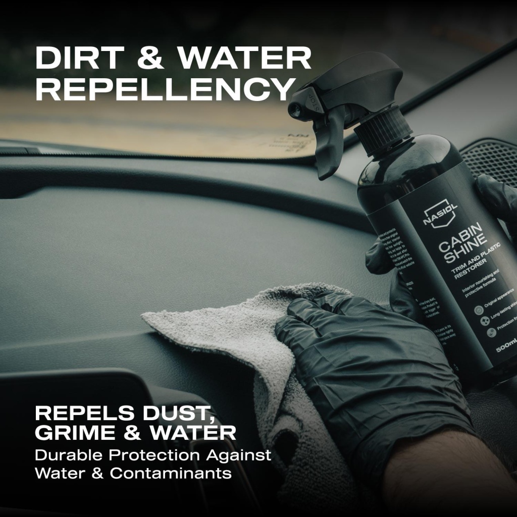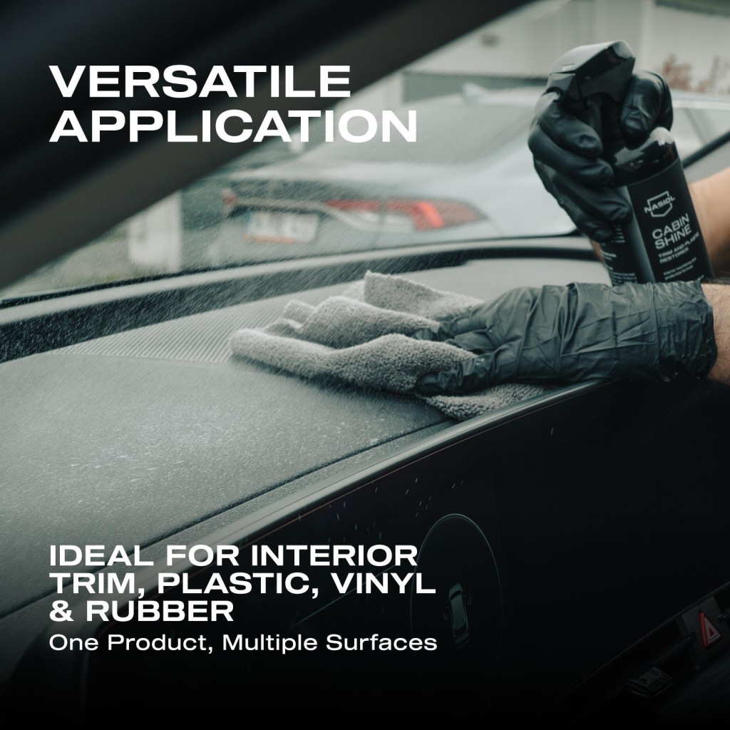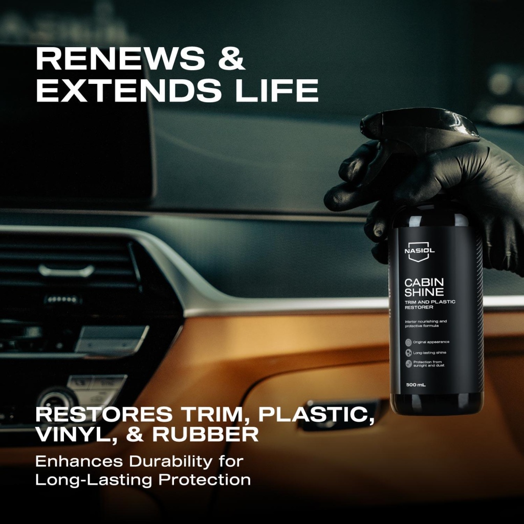 Araçların torpido, kontrol paneli, ön konsol, kapı kolu gibi bölümleri tozlanmaya, eskimeye ve solmaya yatkındır. Araç içindeki plastik, kauçuk ve vinil yüzeylerin deforme olmasını önlemek için bu yüzeyleri Nasiol CabinShine gibi özel olarak formüle edilmiş bir solüsyon ile korumak gerekir. Nasiol CabinShine ürününü yüzeyleri Nasiol TEM APC Pro ile temizledikten sonra kullanmanız tavsiye edilir.